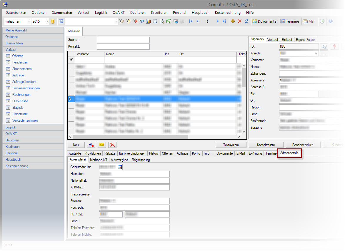 Unter Stammdaten → Adressen sind die importierten Daten zu finden. Dabei wird pro Adresse im Register Adressdetails die zusätzlichen Daten zur Adresse dargestellt.