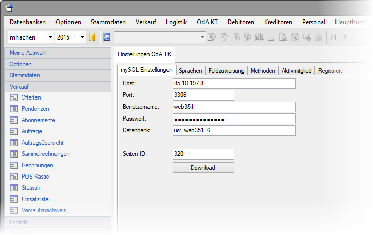 Hier werden die Verbindungsparameter zur mySQL-Datenbank eingetragen. Diese mySQL-Datenbank befindet sich auf dem Webhosting.