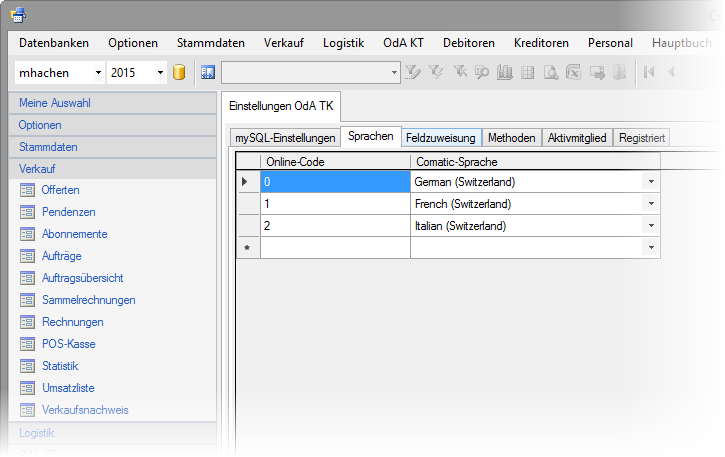 Hier werden die Zuweisungen der Sprachen des Formulares und der Sprachen in Comatic gemacht. Es ist zwingend notwendig, dass alle verfügbaren Formularsprachen einer Sprache in Comatic zugewiesen sind.