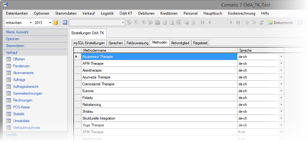 Hier werden alle Methoden aufgelistet welche der Benutzer im Formular auswählen kann. Es ist wichtig, dass die Bezeichnung exakt mit derjenigen aus dem Online-Formular übereinstimmt. Ansonsten kann die Zuweisung beim Import nicht korrekt durchgeführt werden.