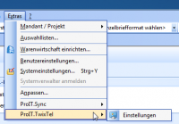Bevor die ProIT.TwixTel Schnittstelle verwendet werden kann, müssen zwingend einige Einstellungen vorgenommen werden. Den Einstellungsdialog ist in Cobra unter Extras –> ProIT.TwixTel –> Einstellungen zu finden.