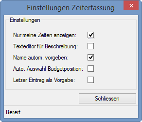 In der Zeiterfassung können gewisse Einstellungen vorgenommen werden.