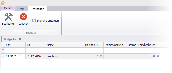 Zeigt eine Aufstellung über alle bestehenden Budgets zu einem Projekt an. Budgets werden im Projekt bearbeitet. Weitere Informationen finden Sie hier.