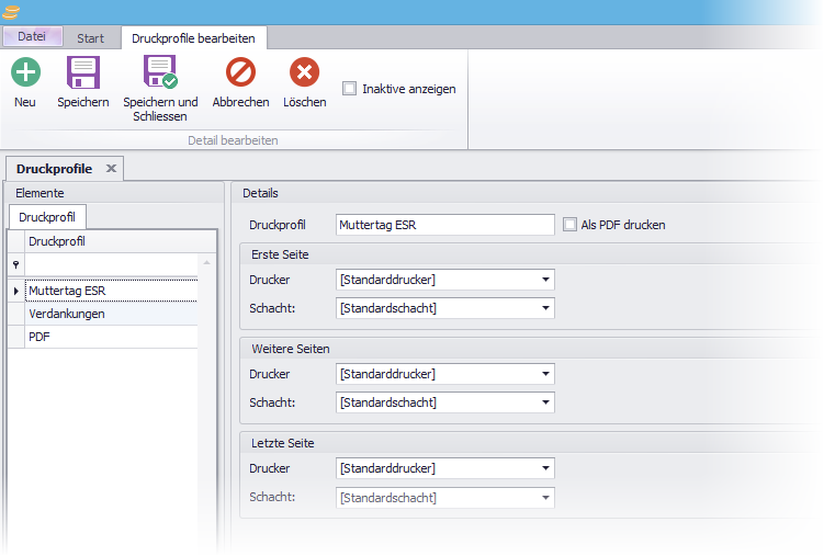 Hier haben Sie die Möglichkeit, verschiedene Druckprofile zu definieren.