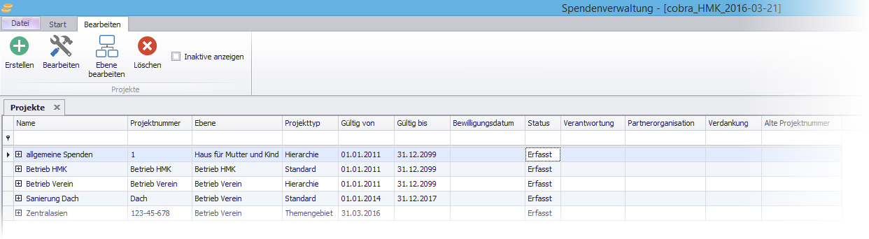 Bevor Projekte erfasst werden können, müssen im Vorfeld die Ebenen definiert sein.