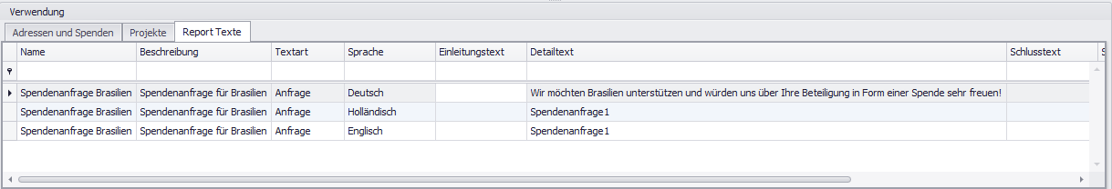 | Vorlage Anfrage* | Vorlage der Spendenanfrage wählen. |