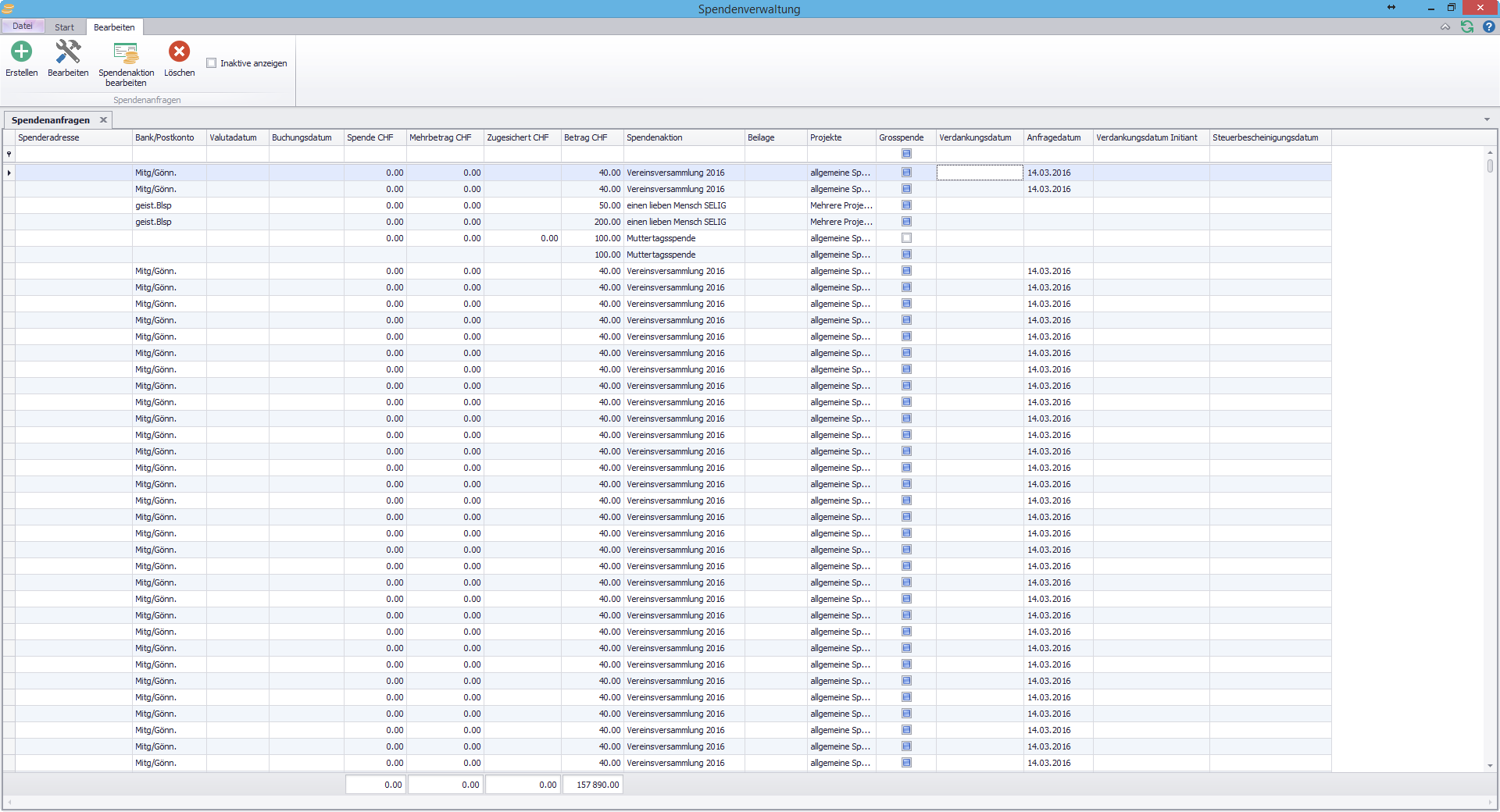 | Betrag CHF | Der erwartete Spendenbetrag, welcher in der Spendenanfrage angefragt wird. |