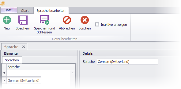 Es können neue Sprachen erstellt, bearbeitet oder gelöscht werden. Sprachen werden für Report Texte eingesetzt.