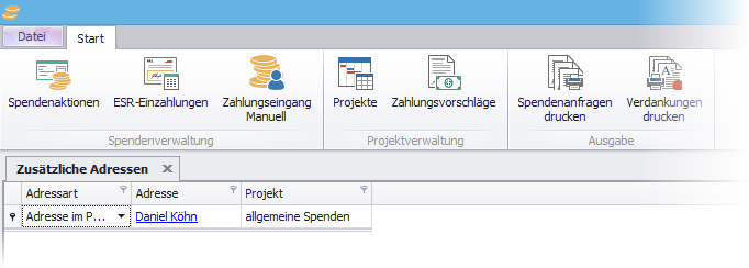 Hier können für ein Projekt zusätzliche Adressen hinterlegt werden. Die Bearbeitung erfolgt im Projekt selber. Weitere Informationen finden Sie hier.
